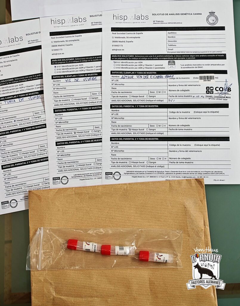 Preparando el envío de las muestras de ADN de Arthur, Thelma y Yis 🇩🇪🔝, para la Real Sociedad Canina Española…