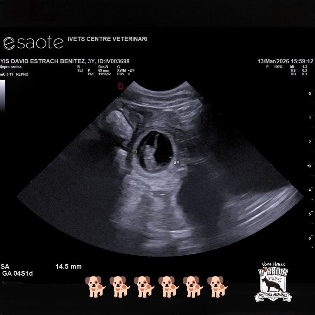 En la eco de confirmación de embarazo se han dejado ver entre 6 y 9 vesículas, por lo que es posible que cuando nazca la camada pueda haber algún cachorro disponible.